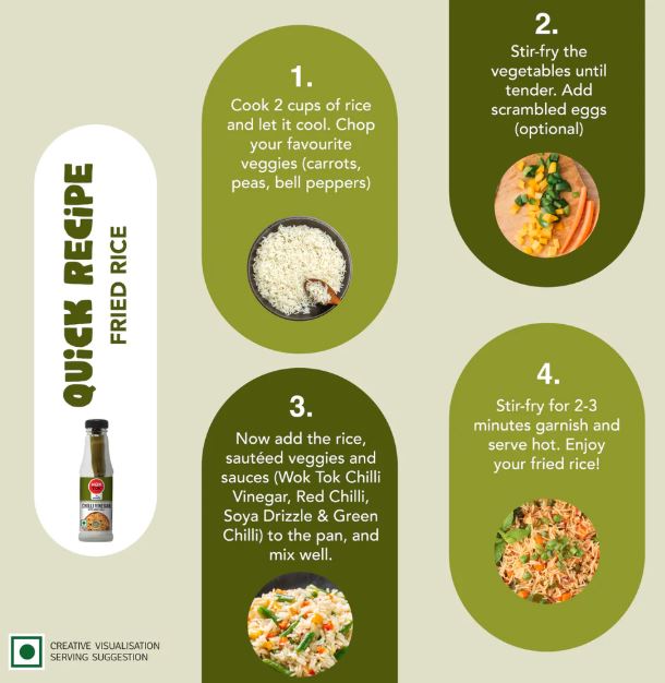 Transform your dishes with the irresistible heat and tangy twist of Veeba's Wok Tok Chilli Vinegar Sauce. Infused with real green chillies, this zesty vinegar is a versatile must-have for every kitchen. Drizzle it over sizzling stir-fries, enhance marinades with its bold flavour, or use it to spice up dipping sauces - the possibilities are endless. Crafted with no artificial flavours or colours, and Zero trans fats, this 100% vegetarian sauce delivers a guilt-free indulgence that's bursting with a fiery kick and tangy delight. Elevate your culinary creations and experience the perfect blend of heat and tang with Veeba's Wok Tok Chilli Vinegar Sauce.
